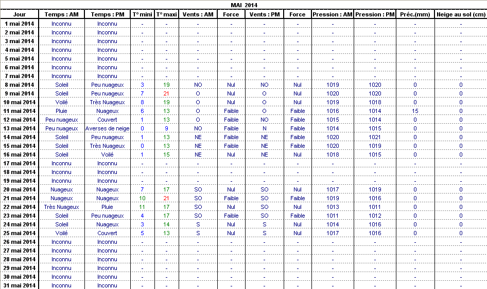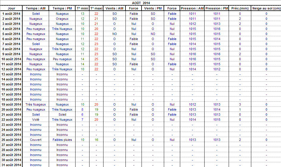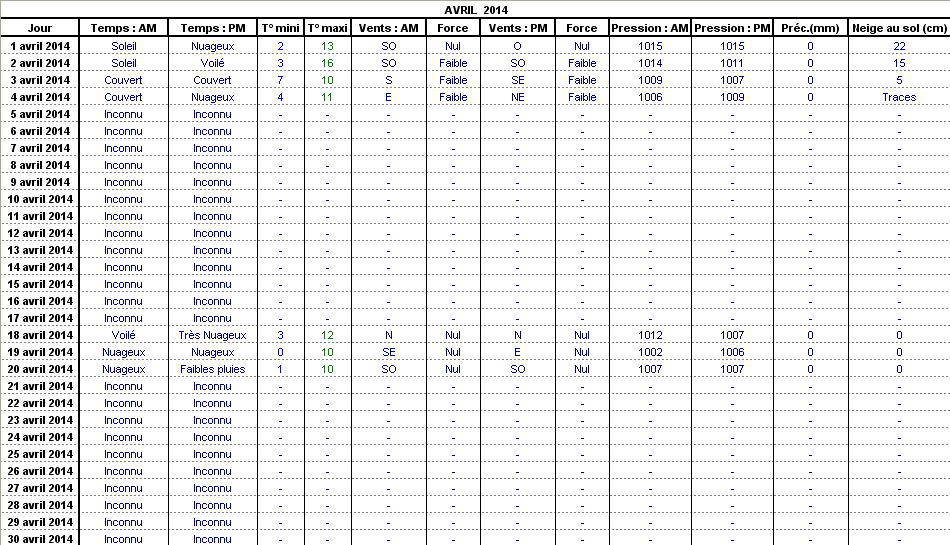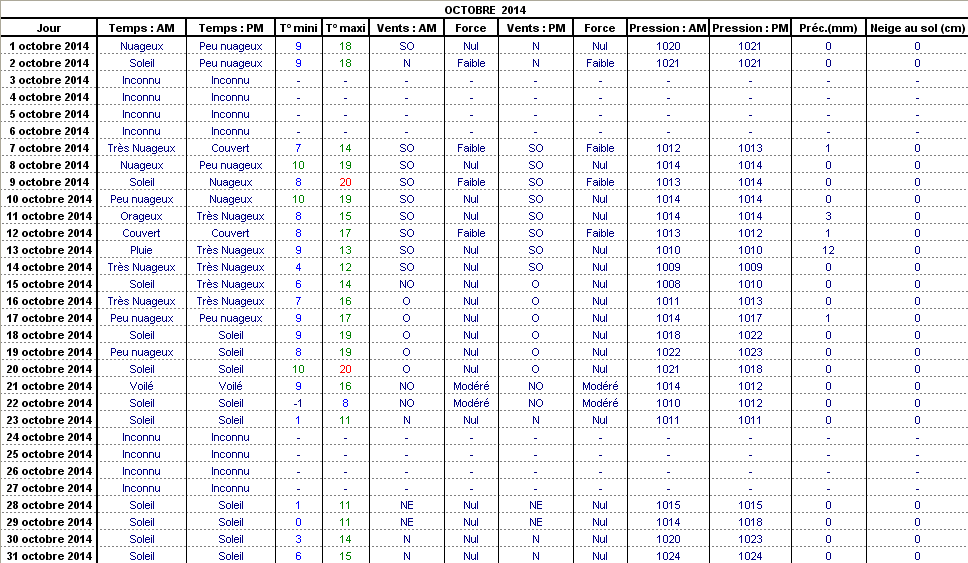Retour années de relevés