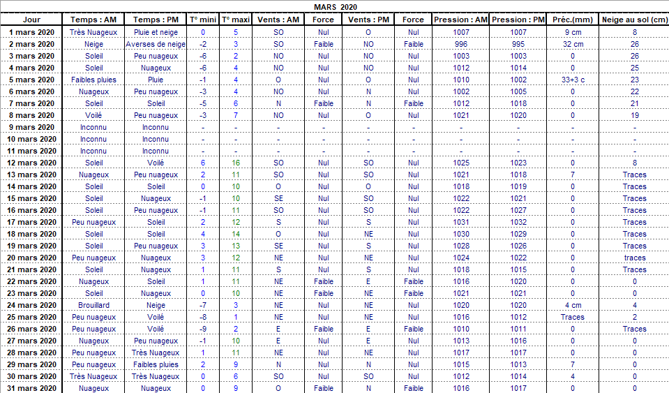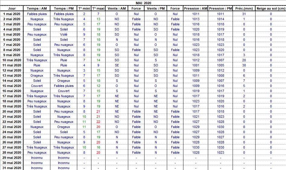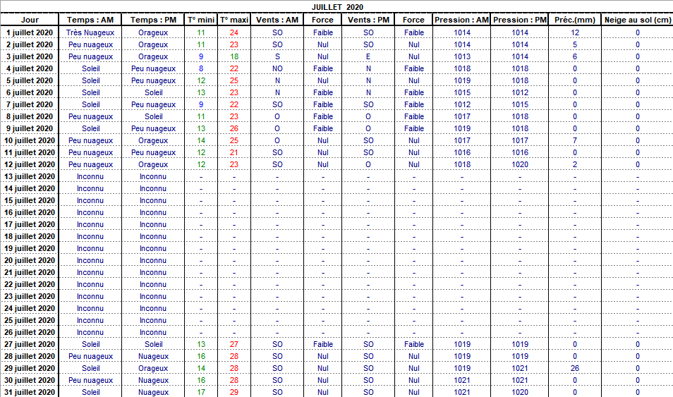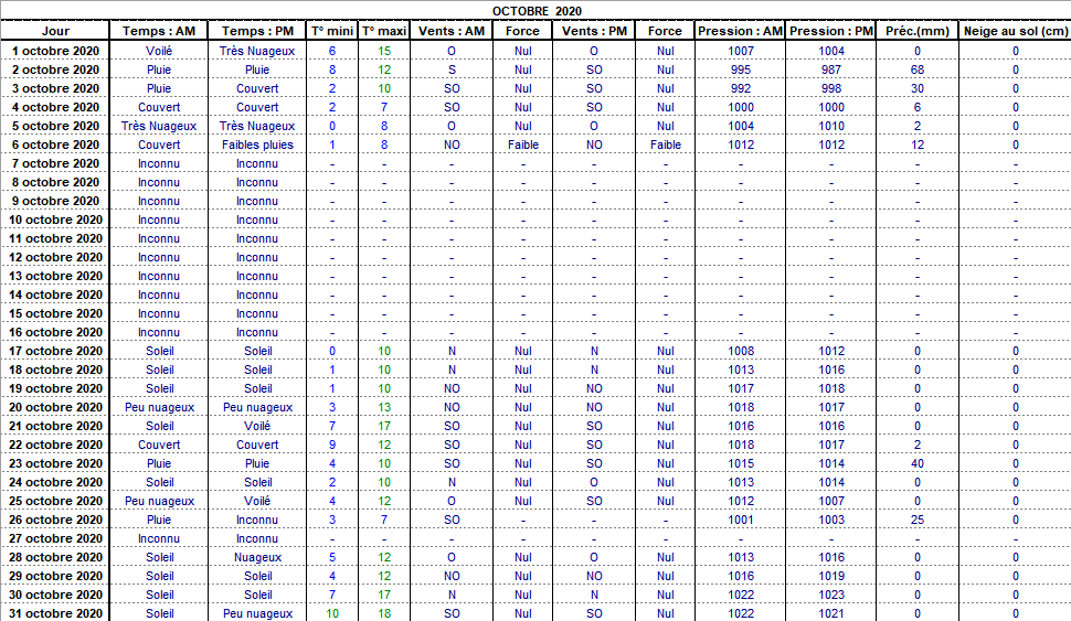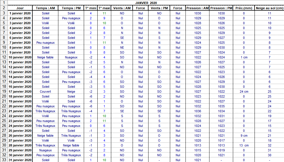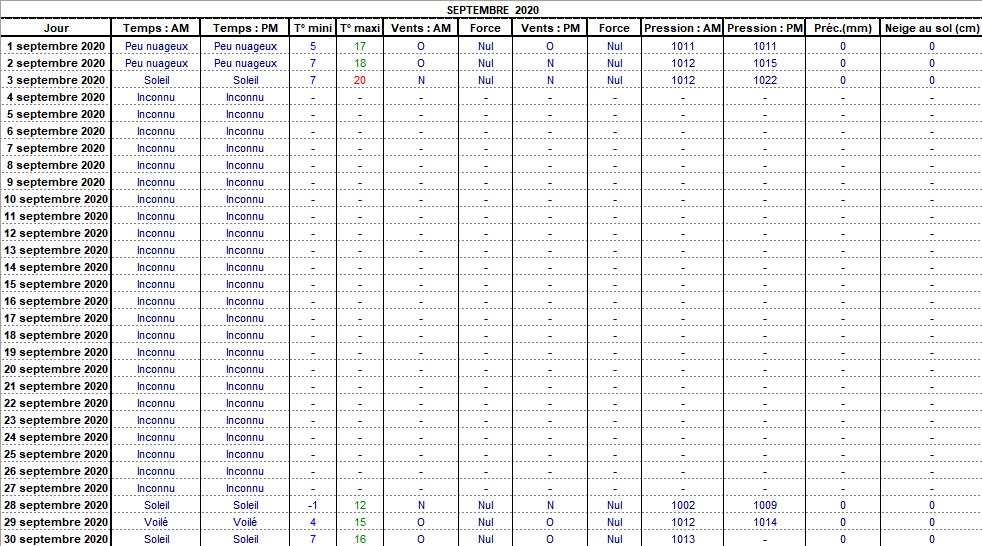 Retour années de relevés