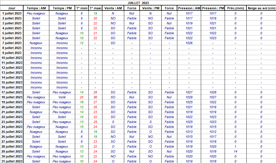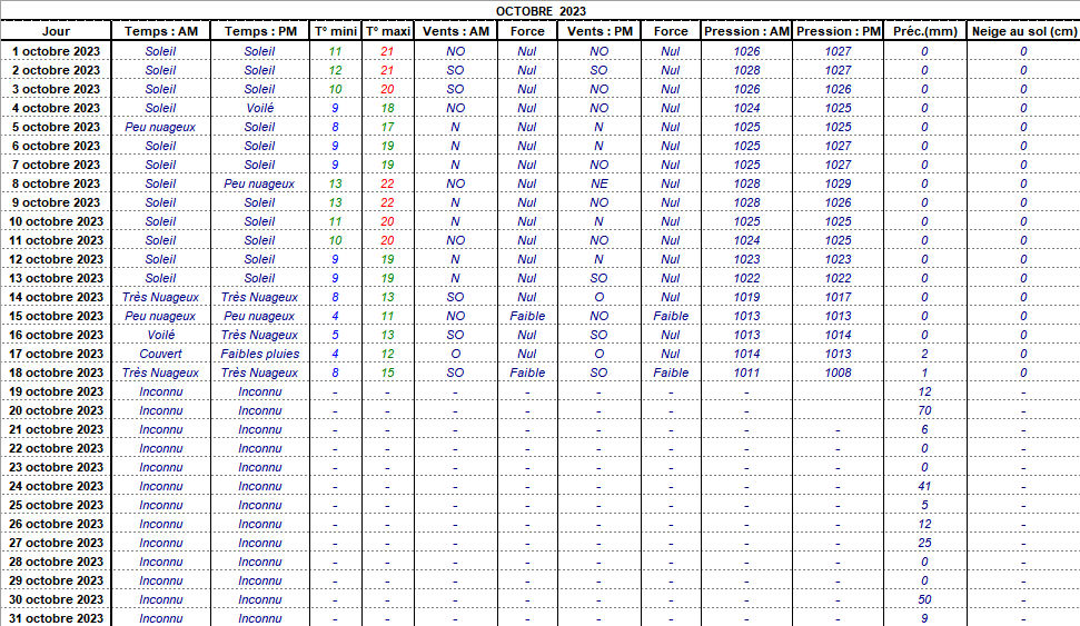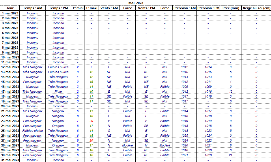 Retour années de relevés